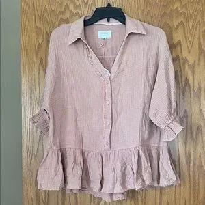 Umgee tan Ruffle Button-Front Blouse