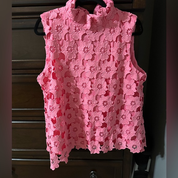 Brand new with tags pink floral embossed tie back top. Beautiful detail and thicker material so perfect for fall. Size L with room so will fit xl.