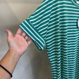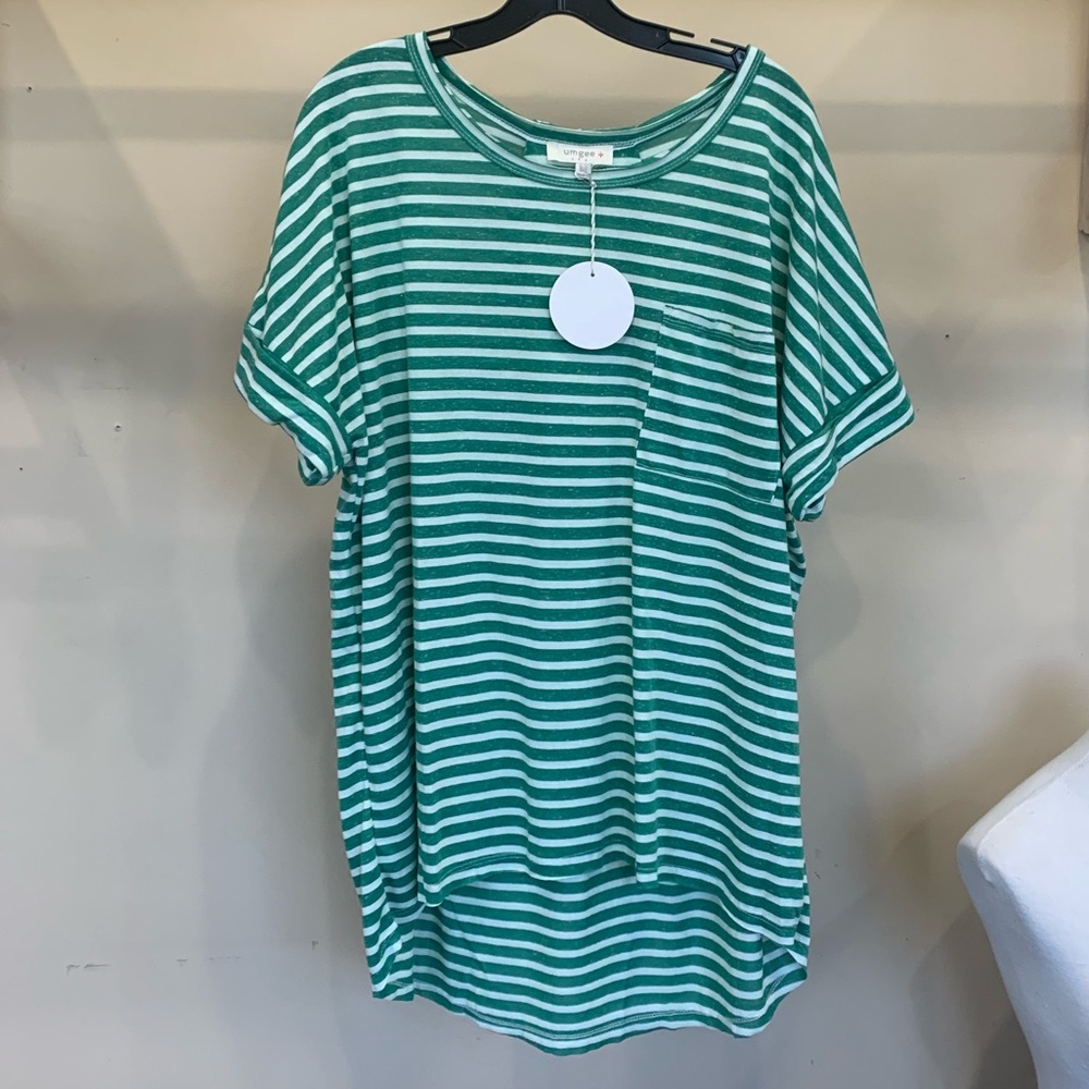 Green stripe umgee high low tunic with cuff sleeve and pocket