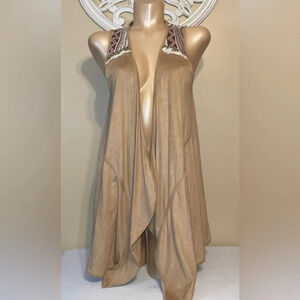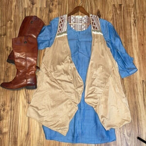 Umgee womens Vest Medium Suede Western tapestry open front suede country pattern