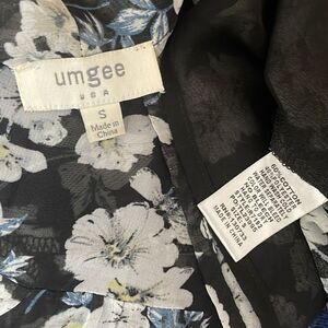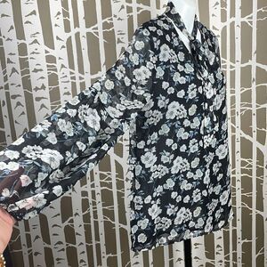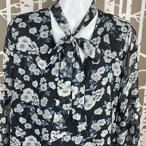 Umgee Black Floral Print Sheer Tie Neck Blouse size S