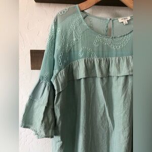 Umgee|Boho mint lace embroidered dress (or tunic top) with tiered ruffle sleeve•