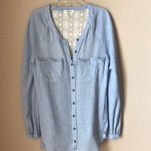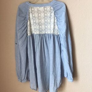 Umgee long sleeve striped tunic Button up front Lace in the back Size Small
