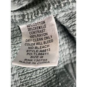 Umgee Dusty Mint Chenille Split Neck Tie Front Long Sleeve Blouse Women's Medium