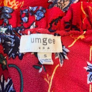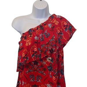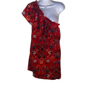 Umgee EUC Red Floral One Shoulder Ruffle Mini Dress Sz S