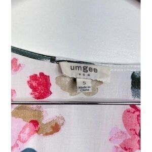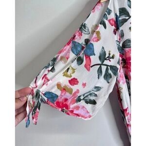 Umgee Floral Print Romper Women's Size S White Pink Blue V-Neck Tie 3/4 Sleeve