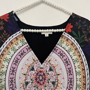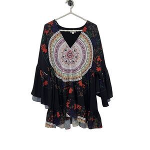 Umgee Oversized Medallion Floral V-Neck Ruffled Sleeves Tunic Women’s Medium
