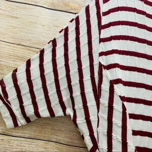 Umgee Stripe Dolman Knit Blouse Raw Edge Maroon