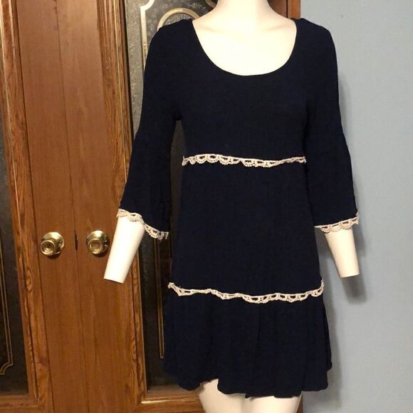 Navy Blue with White crochet edging