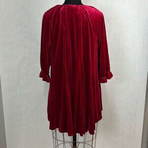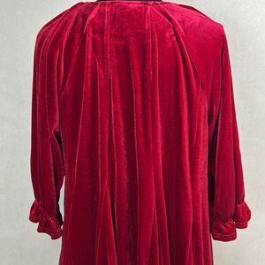 Umgee Velvet Tunic Top Sz Large Red V Neck, Ruffled 3/4 Sleeve, High-Low Hemline