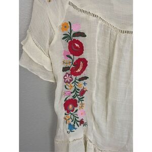 Umgee Women’s Floral Embroidered Ruffle Top with layer bell sleeves