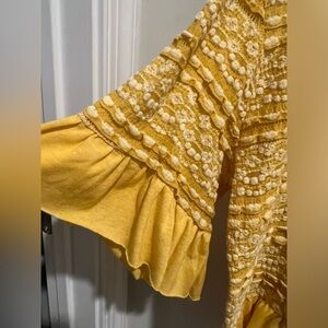 Umgee Yellow Crochet-Lace Boho Top with High-Low Hem