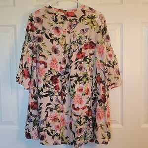 Umgee pink floral bell-sleeve blouse size M