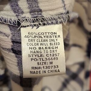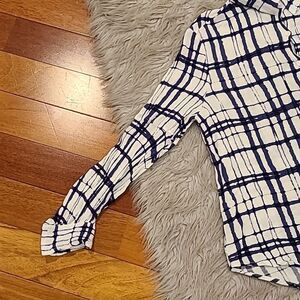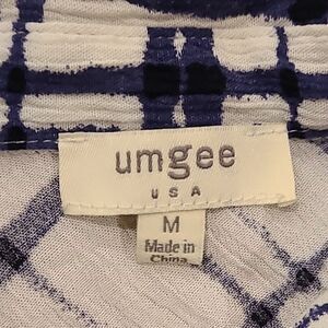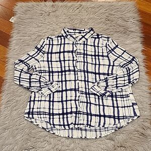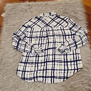 Umgee womens white and navy blue tye dye plaid cotton flowy long sleeve button down shirt size medium