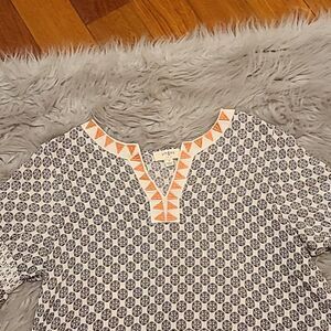 Umgee womens orange embroidered collar and black and white tunic with baloon sleeves size small
