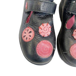 Umi | Girl's Black and Pink Flower Leather Mary Jane Shoes | Size: 7