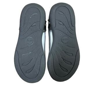 Beautiful patent leather black t-strap mary jane flats with classic buckle closure. Features studded darker silver leather heel. Classic buckle closure
