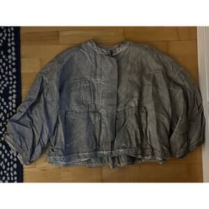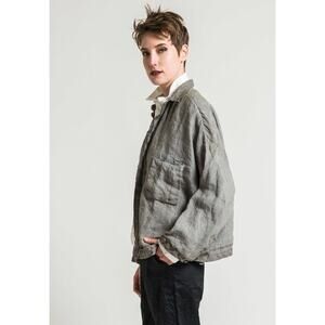 Umit Unal Button Linen Jacket Grey Oversized Large