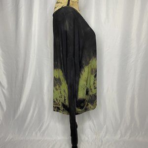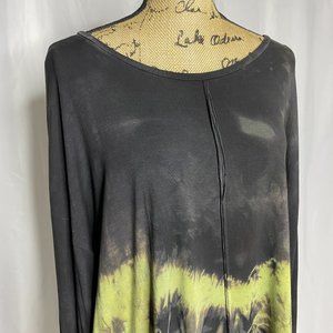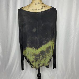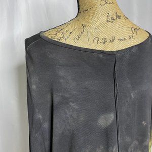 Umit Unal blouse top. Long sleeves. Gray and green colors. Tie dye print. Seam details down front and back middle. Soft thin stretch material. Wide scoop neck. Slight winged sleeve. Size L. Approx measurements while flat- Pit to pit: 26.5", length: 25"
