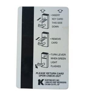 Un Branded Kustom Hotel Room Key Card with Instructions Floral Design