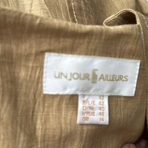 Un Jour Ailleurs Linen Blend Pant Suit Jacket Blazer Gold Metallic US 12