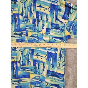 Un Tied Shirt Mens Large Blue Sword Fish Hawaiian Casual Button Up Short Sleeve