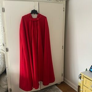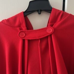 Un branded red hooded open front cape size OS (sizing say 5XL)