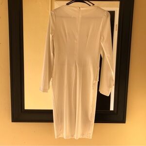 UnBranded Dress White Polyester Fitted Back Zip SzM Long Sleeves Very Nice