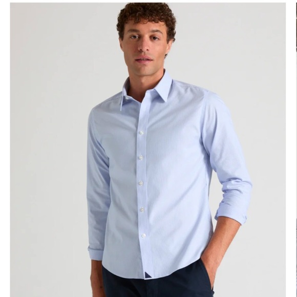 Featuring timeless blue and white stripes, a sharp Stay-Put Collar, and our signature navy sail, the classic Wrinkle-Free Bordeaux Shirt is both tried-and-true yet contemporary. An essential all-season style, this bestselling 100% cotton shirt works equally well at the ballgame as it does in the office. It stays sharp all day—and has that perfect untucked length. Pair it with our Traveler Pants for a work outing or your next adventure.