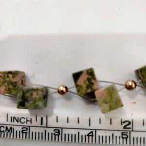 Unakite Copper Bracelet Cube Bead Illusion Floating Toggle Clasp 8 inch
