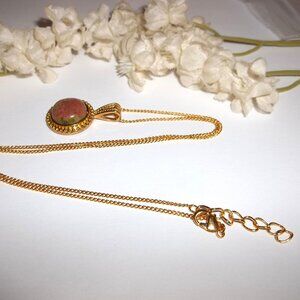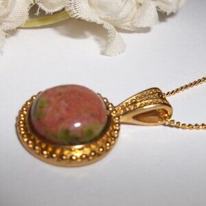 Unakite Gold Faux Gemstone Necklace Pendant Charm Circle Fashion Jewelry C971