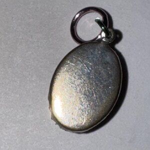 Oval Unakite Pendant. This is a handmade pendant. This pendant is set in a silver plated oval mounting and features 2 different sized anodized aluminum jump rings. One jump ring is pink the other is a light blue color.The stone measures 14.96mm tall, 11.14mm wide, and 5.20mm thick. This pendant weighs 1.51 grams.