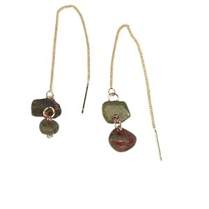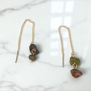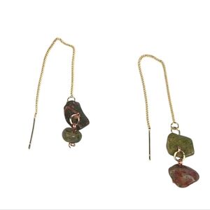 Earthy elegance meets modern movement in these stunning Unakite threader earrings.