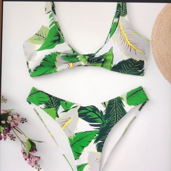 Beautiful 2 piece leaf print bikinis...start preparing for summer and trips to the beach!!! This suit is honestly much cuter in person...the pictures just don’t do it justice. The white with such bright colors is stunning.