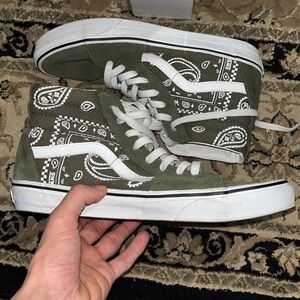 Vans Sk8 Olive Green Men's High Top Suede Skate Shoes pre owned
