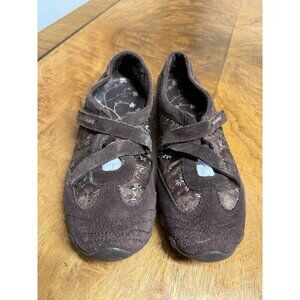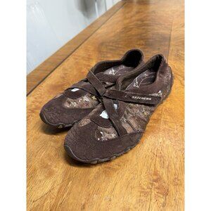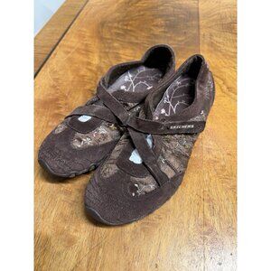 Skechers Women’s 9.5 Brown Biker Mary Janes Slip On Shoes Strappy Y2K satin floral