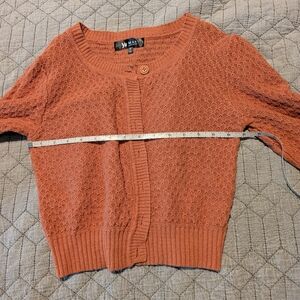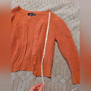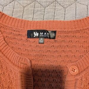 Peachy knit cardigan from brand Ye Mak (reverse image search and you will find it on Walmarts website).