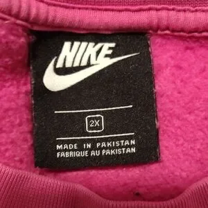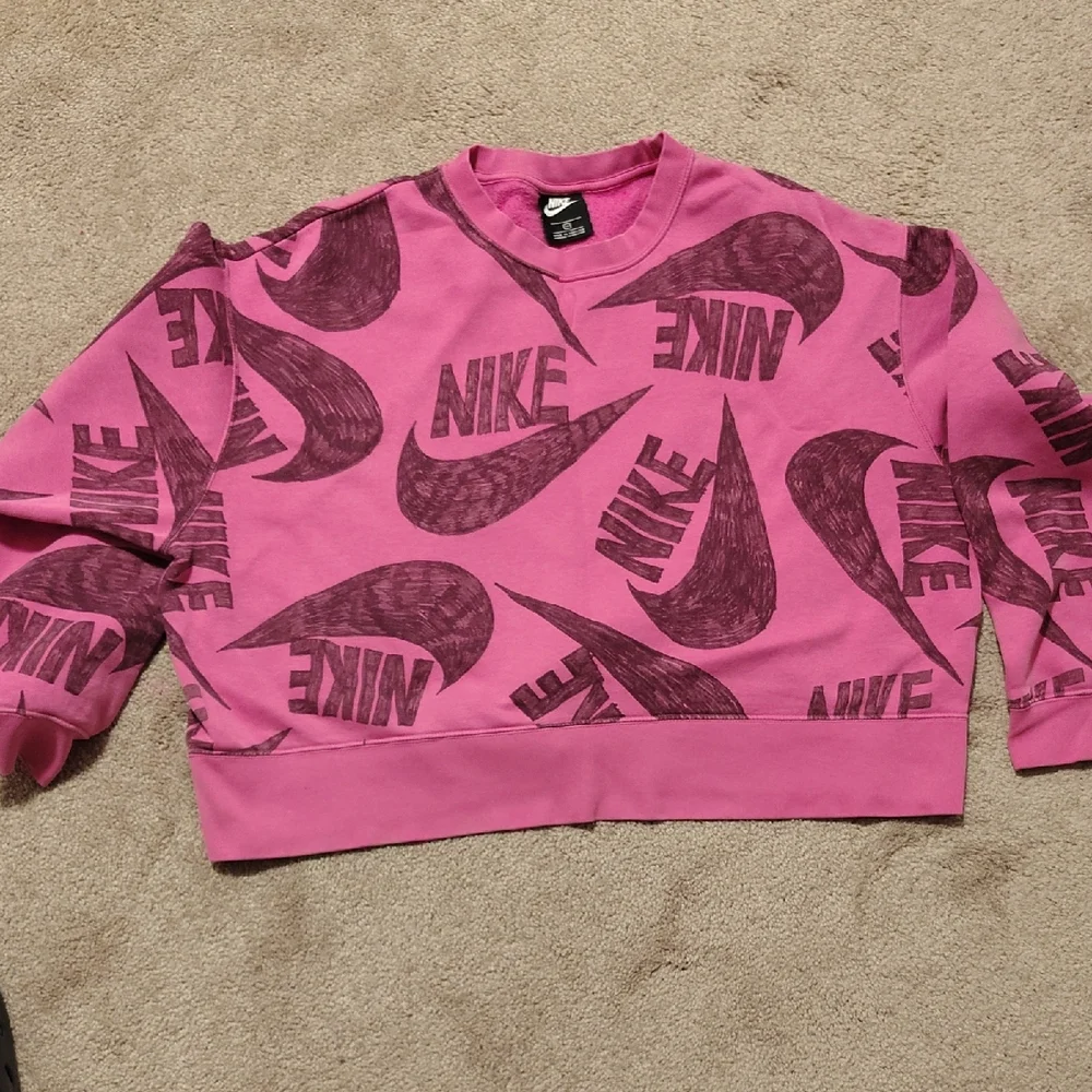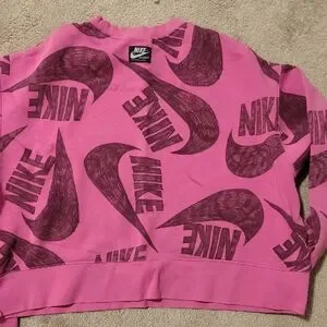 Bold womans pink sweatshirt with Nike logo pattern. Perfect for casual wear..