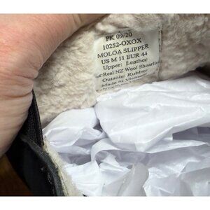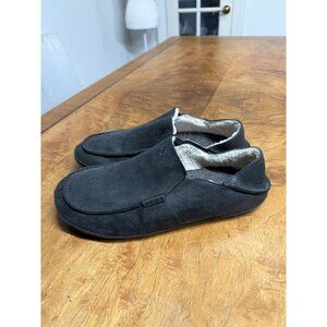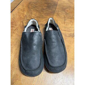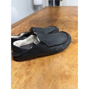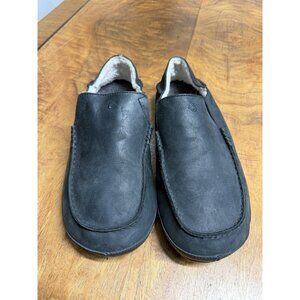 Olukai Men's 11 Black Moloa Leather Classic Slip-On Loafer Shoes Shearling EU 44
