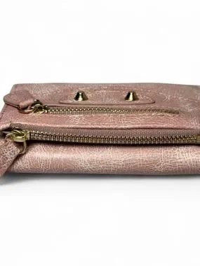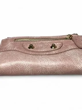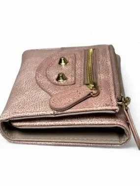 Compact Y2K pink trifold wallet with gold hardware and a sleek utility design. Functional and stylish with plenty of room for cards, cash, and coins.