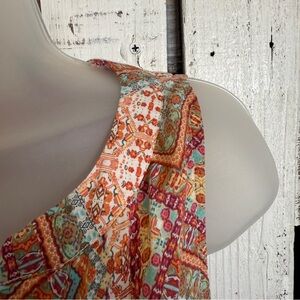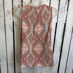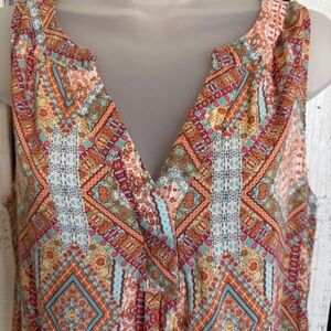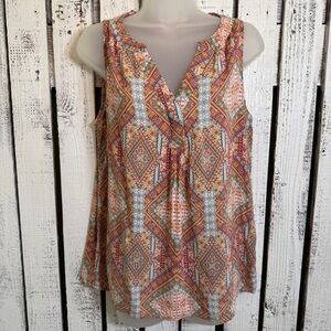 Rose & Thyme Sleeveless Top Womens Size Large Boho Quilt Print Lightweight Vneck