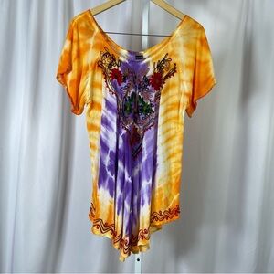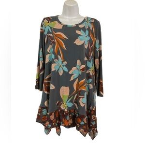 This is bright and brilliantly colored, soft and smooth and a little bit sexy with some off shoulder action! This boat neck dolman tunic looks great with jeans or black pants! The waist is fitted, size up for a more loose fit!