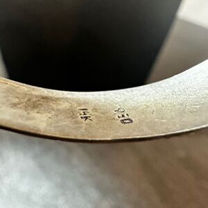 It is stamped 14k and 950 silver (So a little more silver than the standard 925)! I love the intricate designs in 14kt (they look like two monkeys and a bird?).