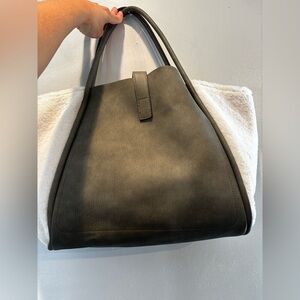 Chic olive suede bag with a sleek design. Perfect for any occasion.