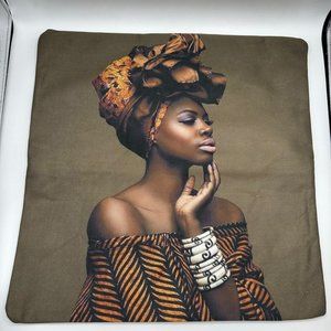 Unbranded Pillowcase Cover featuring striking Black Women Art in African style. Handmade, with a zip closure for easy use. Brown and black heavy weight fabric adds a touch of unique home decor.