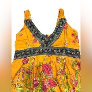 Unbranded 90s Y2K Faircore Top Yellow & Brown Floral Print Baby Doll Size Medium