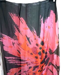 This large rectangle scarf in black, pink, purple, and orange features an abstract floral burst pattern, perfect for adding a touch of bohemian flair to your outfit. Made from chiffon fabric, it is lightweight and versatile, making it a great accessory for all seasons. With its multifunctional design, this scarf can be worn as a shawl or a wrap. Approximate size 39x76 beautiful colors