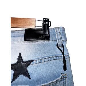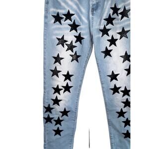 Unbranded Amiri-Style Star Patch Jeans - Size 30 (Measured) Light Wash Denim