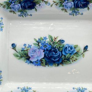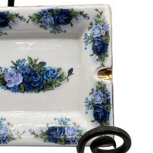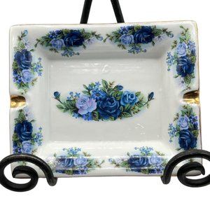 Unbranded Ashtray Blue Floral Transferware Gold Trim Porcelain Tray Vintage Matc