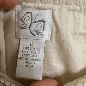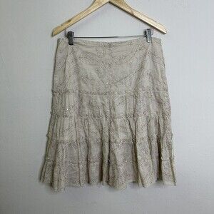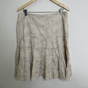 Unbranded Beige Skirt Tiered Floral Embroidered Size 12 Knee Length Side Zipper.
